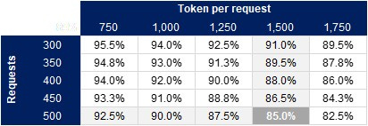 This margin assumption is highly sensitive to the actual utilization of users, as we can see in this sensitivity table here that stresses our utilization and token per request inputs.